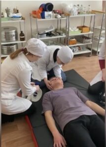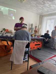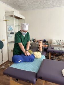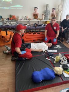 Заняття проводяться з використанням сучасних тренувальних манекенів, за допомогою яких слухачі засвоюють практичні навички з проведення реанімації дорослих та дітей, методи відновлення прохідності дихальних шляхів, транспортну іммобілізацію, зупинку кровотечі, допомогу при потраплянні стороннього тіла в дихальні шляхи, отруєннях, опіках, травмах, гострих захворюваннях, пологах у позалікарняних умовах тощо.